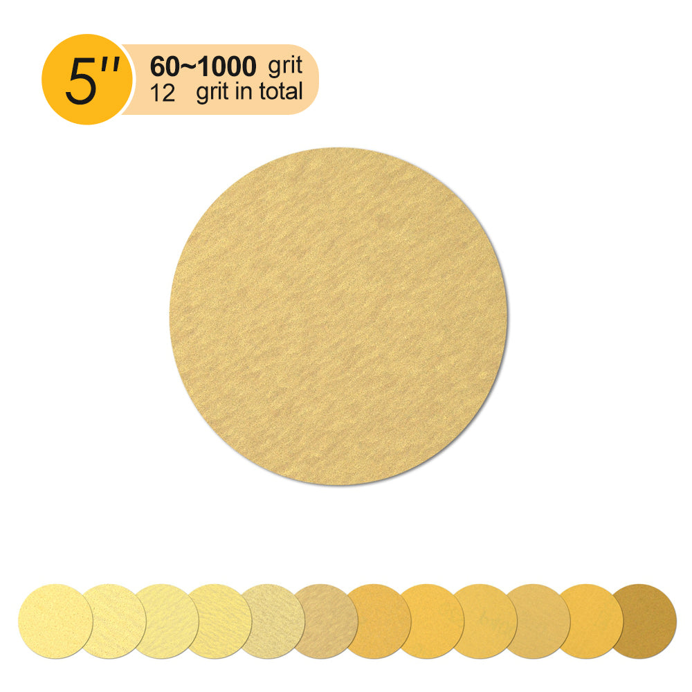 5" (125mm) Yellow Hook&Loop Sanding Discs for Dry Sanding (60-1000 Grit), 1 Disc