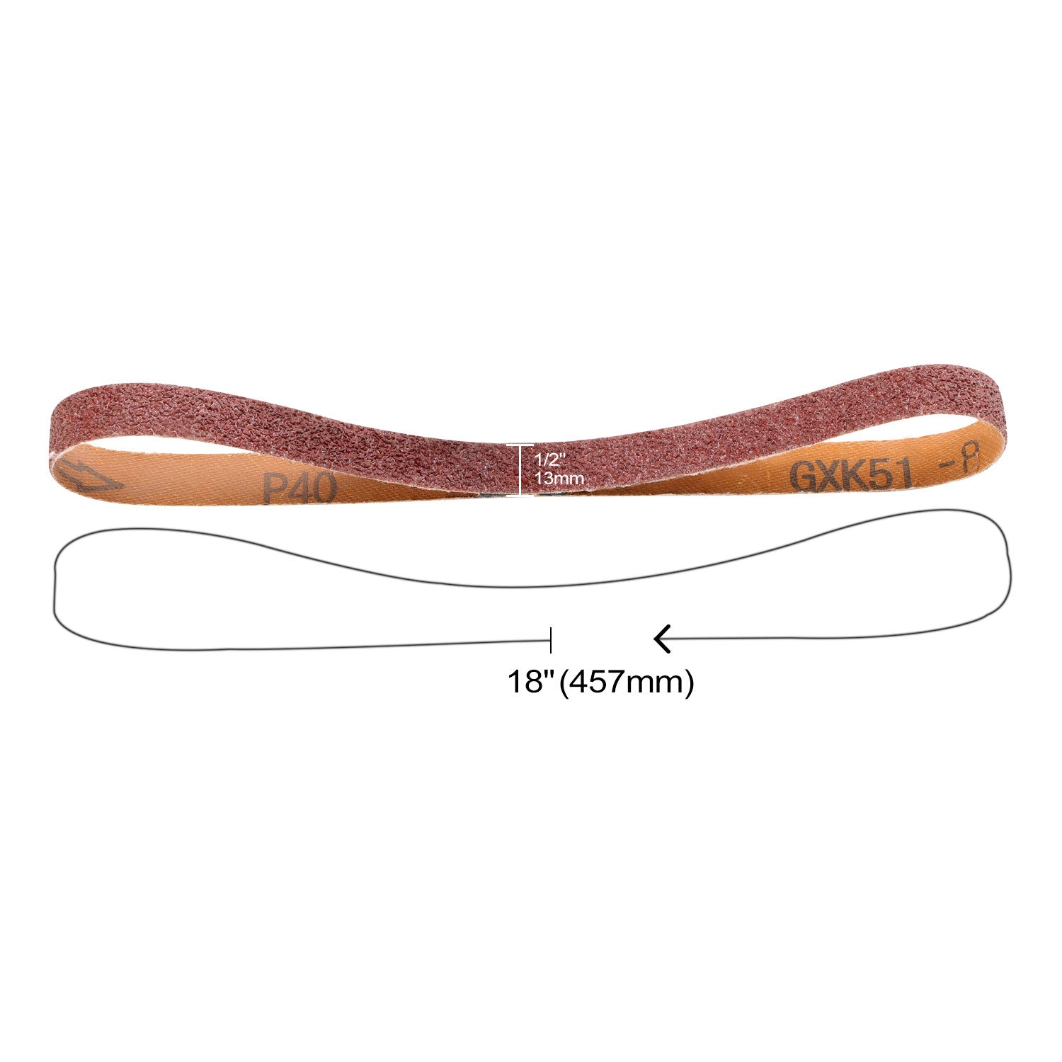 1/2" x 18" (13x457mm) Aluminum Oxide A/O Sanding Belt - 50Pcs/Box