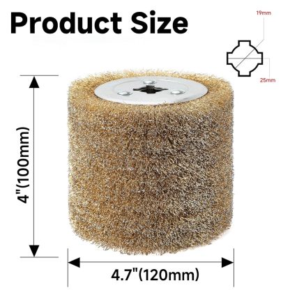 4.7" x 4" with 3/4" Quad Keyway Copper-Coated Polishing Wire Drum Heavy Rust Remover, 0.3mm Steel Wire