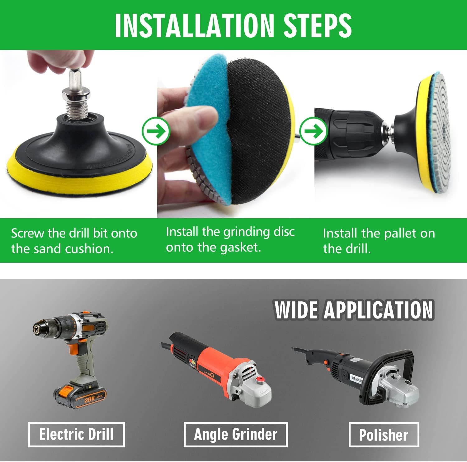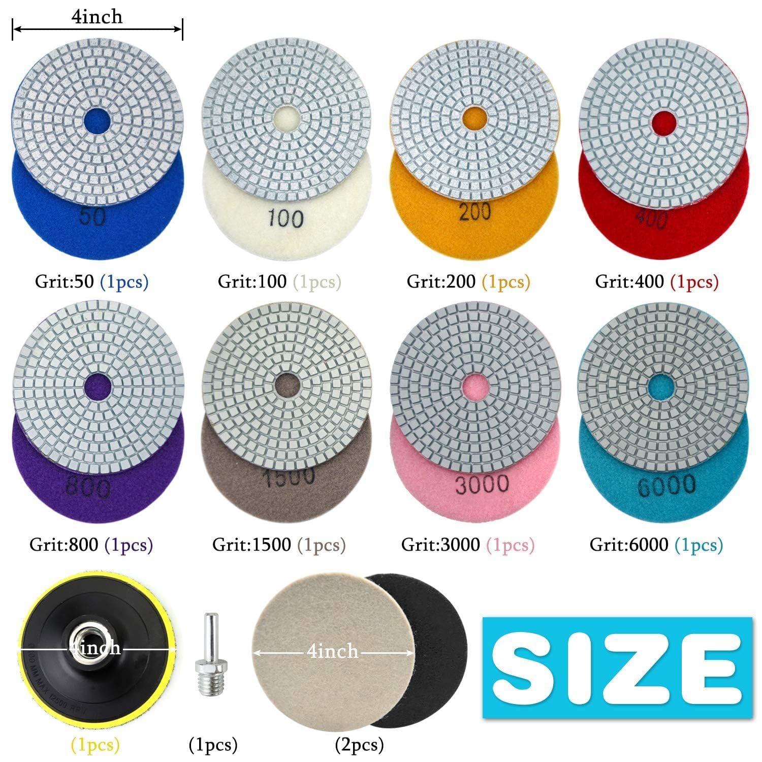 WORKEASE 4 Inch Diamond Polishing Pads with 5/8’’-11 Backer Pad - 12Pcs/Box