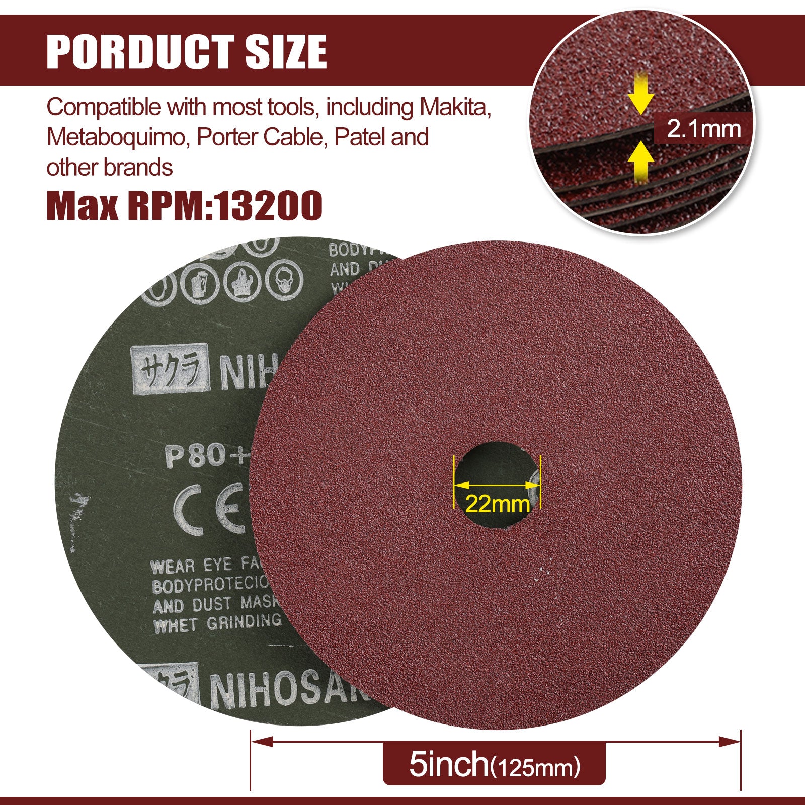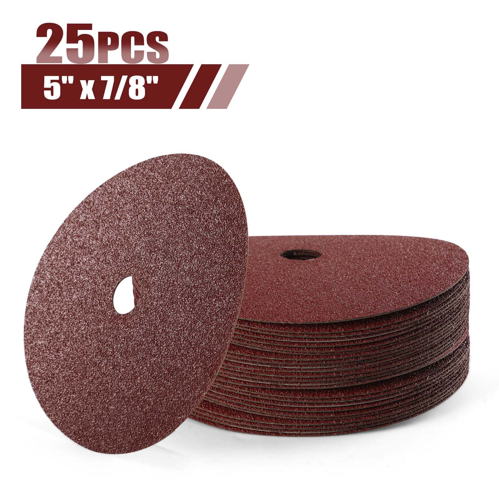 5" x 7/8" A/O Alumina Resin Fiber Sanding Discs - 25Pcs/Box