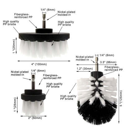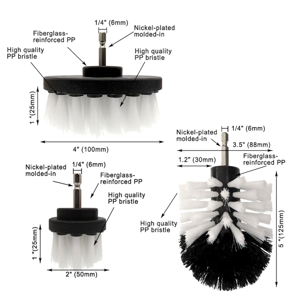 Electric Drill Cleaning Brush For Household/Automotive with 6mm Shank Drill Attachment. 3 Pcs Set